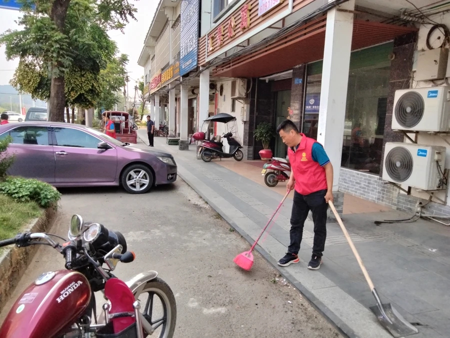 牛慶尊作志愿者清掃垃圾,宣傳文明衛(wèi)生知識。