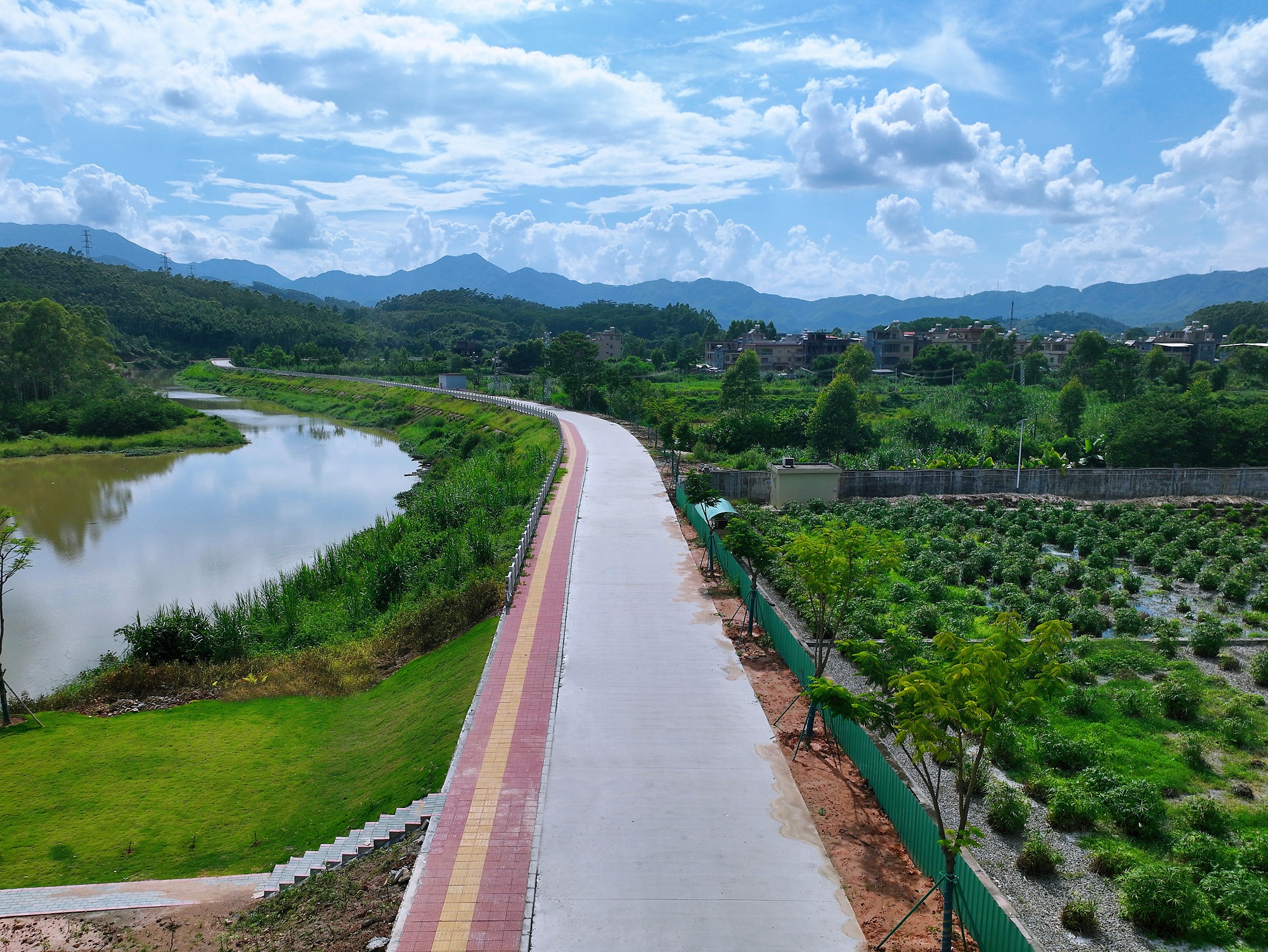 濱水公園建設(shè)項(xiàng)目于今年4月啟動(dòng),建有人行綠道,種植桃金娘、鳳凰樹(shù),鋪設(shè)草皮,目前已基本完工。