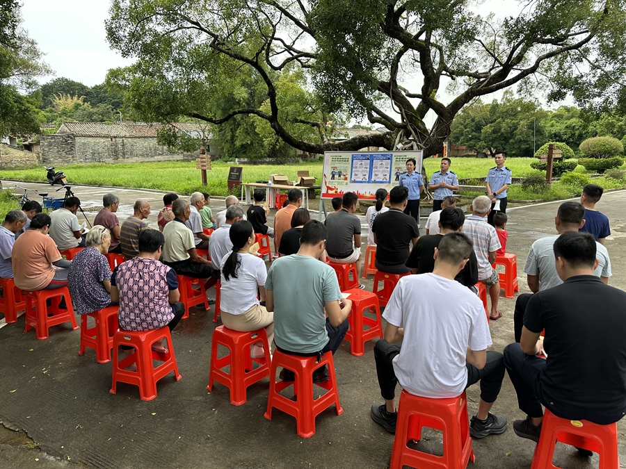縣公安局督察大隊(duì)黨支部聯(lián)合縣公安局反詐宣講團(tuán)到旭日村開展反詐宣傳。