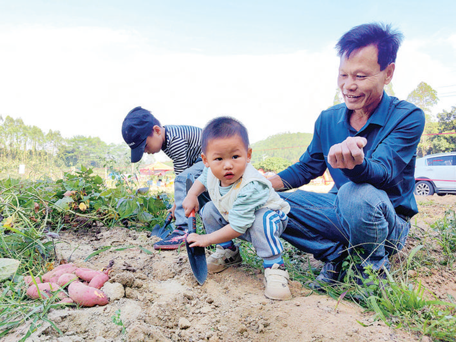 親子一起挖番薯。 惠州日報記者陳濤 攝