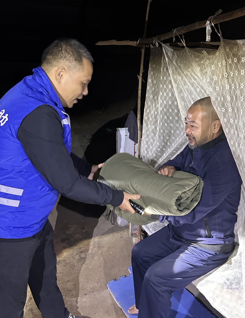 臨時(shí)遇困群眾收到御寒物資。 惠州日報(bào)記者黃桃 通訊員朱劍威 攝