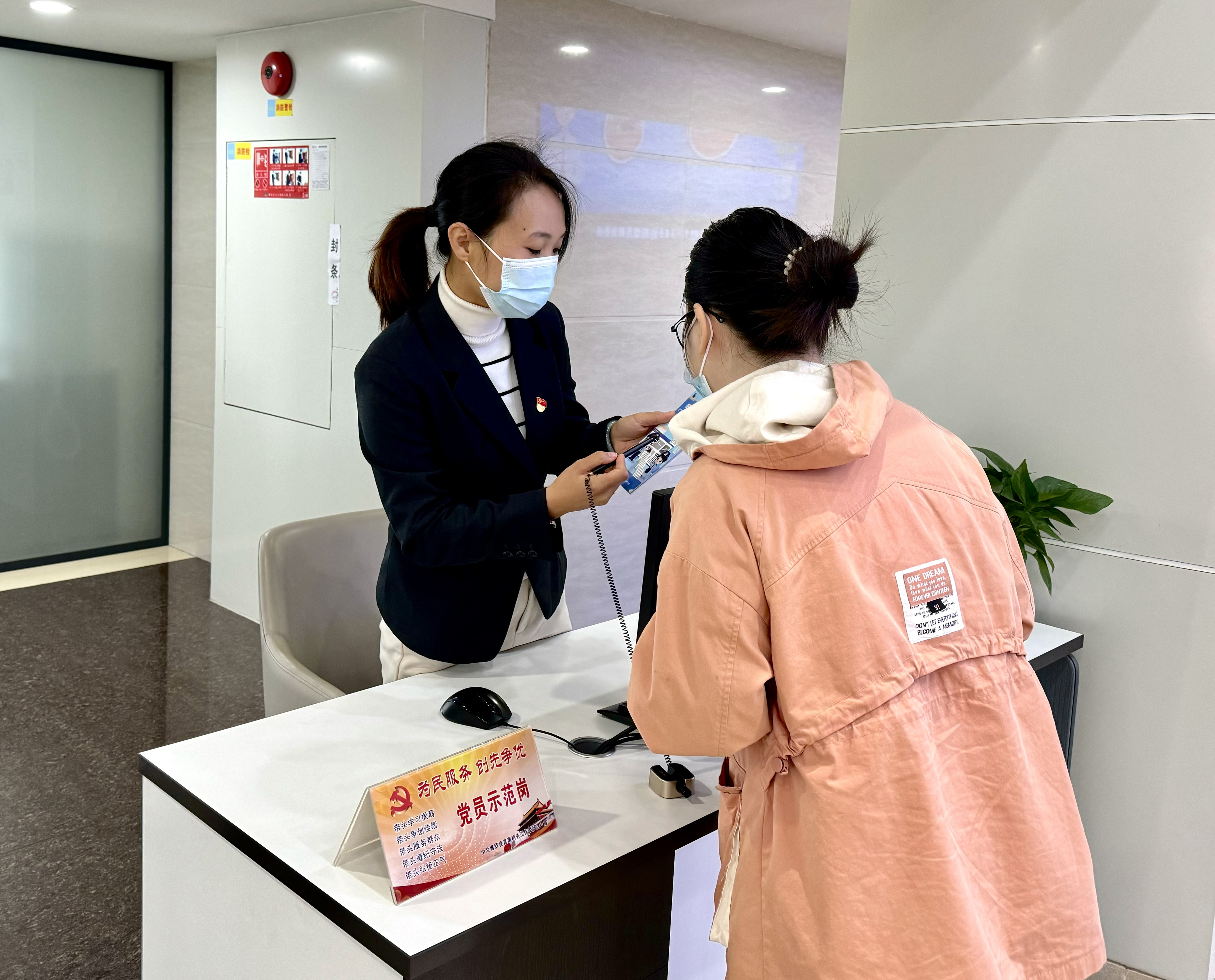縣政務(wù)服務(wù)大廳設(shè)置黨員示范崗,黨員亮身份服務(wù)群眾。
