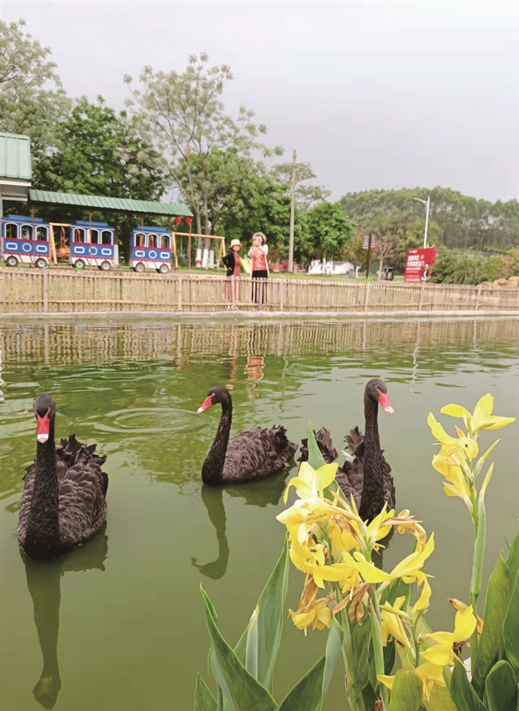 新作塘花海有一個十分寬敞的風(fēng)箏草坪,不僅適合孩子們奔跑嬉戲,也是夜晚放煙花的好去處。往年,有不少游客夜晚專程來到這里,和家人、朋友一起燃放煙花。大家一起感受春節(jié)的開心快樂。草坪對面,園區(qū)種植了一片金木瓜。一株株木瓜樹上結(jié)滿了金燦燦的木瓜,看得惹人歡喜。據(jù)介紹,和普通木瓜不同,金木瓜的顏色從小瓜到成熟都是金黃色的。