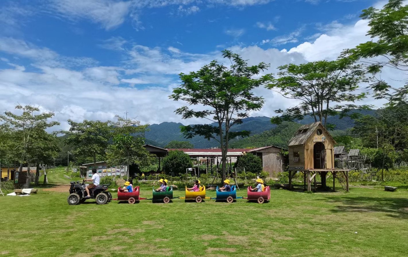 大人們帶著孩子用石磨磨豆?jié){,老師帶著孩子在草坪上做游戲,家長(zhǎng)與孩子一起給小兔子小松鼠喂食、在果園菜地里觀察植物……每到周末,博羅縣柏塘鎮(zhèn)上洞村便會(huì)熱鬧起來(lái),附近的村民也像趕圩一樣,來(lái)到這里擺賣農(nóng)產(chǎn)品和小吃,儼然一幅鄉(xiāng)村樂(lè)園場(chǎng)景。
