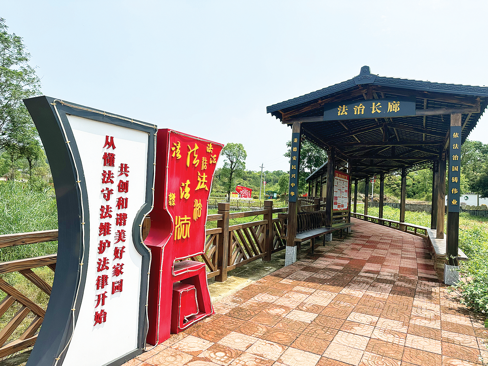 柏塘鎮(zhèn)石崗村獲評(píng)省民主法治示范村。這是該村打造的法治長(zhǎng)廊。
