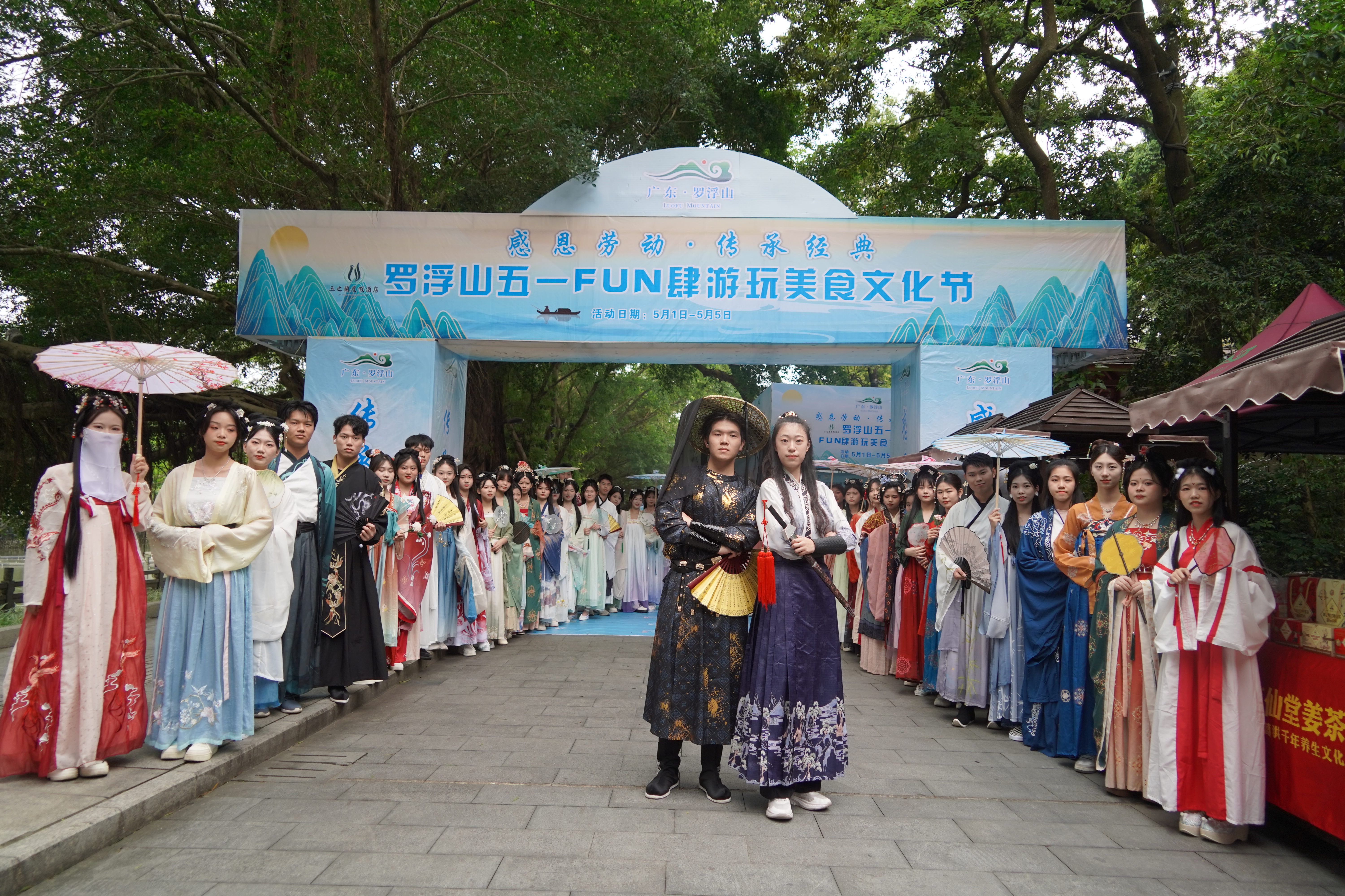 羅浮韻秀是景區(qū)掀起國潮風的一個縮影。國風巡游,韻味十足。一眾漢服佳人組成巡游方陣環(huán)羅浮山白蓮湖巡游,和游人一起感受中式浪漫。禮樂投壺、蹴鞠嬉戲、不倒翁互動,各類國潮游戲以“互動+視覺”的雙重驚艷,讓游客在歡笑聲中樂享“五一”假期。羅浮山是仙山,也是一座愛情圣山。今年,紅娘牽線火爆出圈。在羅浮山,羅浮紅娘相親舞臺在“五一”小長假期間隆情上演。連日來,說媒現場人潮涌動,臺上紅娘親切、幽默的語言,讓現場氣氛快速升溫,打開青年男女掩藏于內心的情感按鈕,掀起了現場的相親潮。
