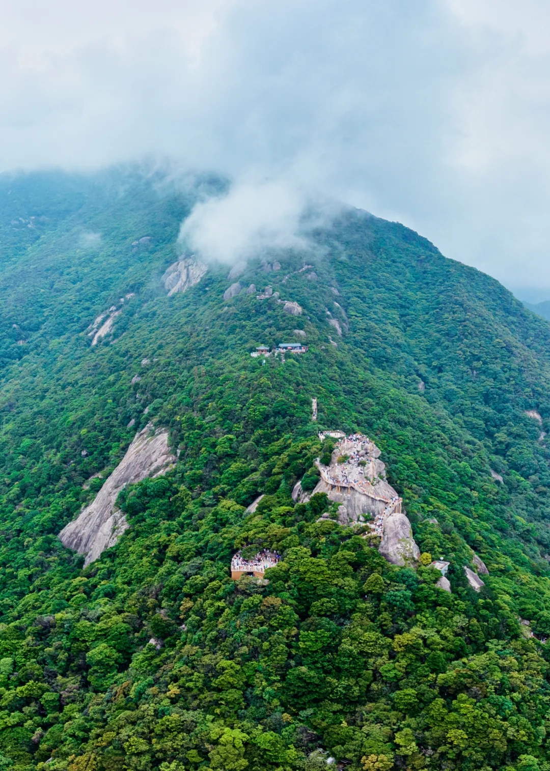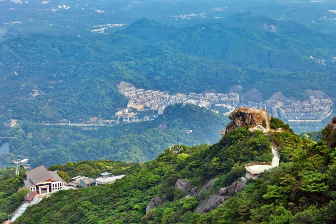 景區(qū)大門——白蓮湖——東江縱隊觀光車售票點——索道下站——乘坐索道——索道上站——鷹嘴巖——登山棧道——分水坳——飛云頂