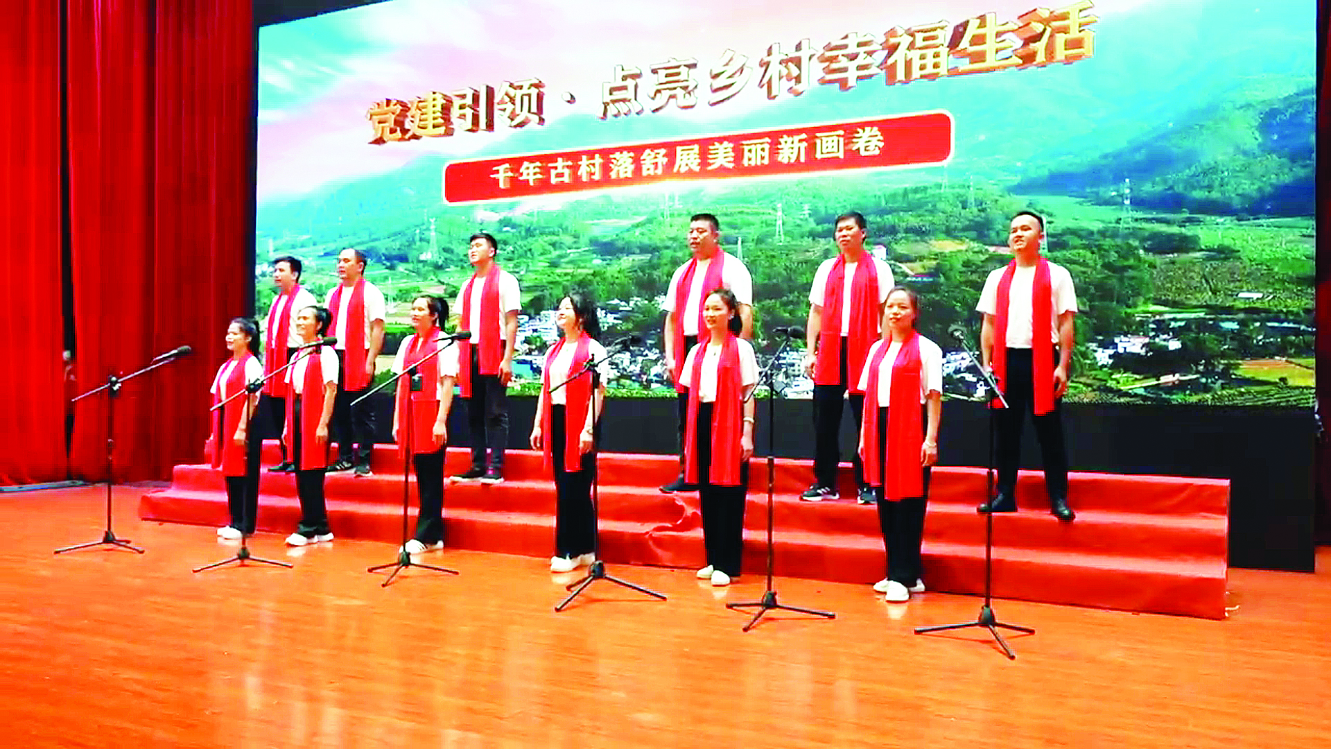 一首村歌唱出一個(gè)故事,唱響一方水土,唱出一片歡欣!豆彭嵭嘛L(fēng)共一村》《千年畫(huà)卷湖鎮(zhèn)圍》《幸福石芽壩山茶鄉(xiāng)》……一首首精心制作的村歌,講述著村莊的特色與發(fā)展。比賽中,每支隊(duì)伍用歌聲展現(xiàn)鄉(xiāng)村新風(fēng)尚,傳遞鄉(xiāng)村好聲音,一個(gè)個(gè)精彩節(jié)目輪番上演,表演者們滿懷激情,演繹著本村村歌,用飽滿的熱情唱出了對(duì)家鄉(xiāng)的贊美與眷戀。