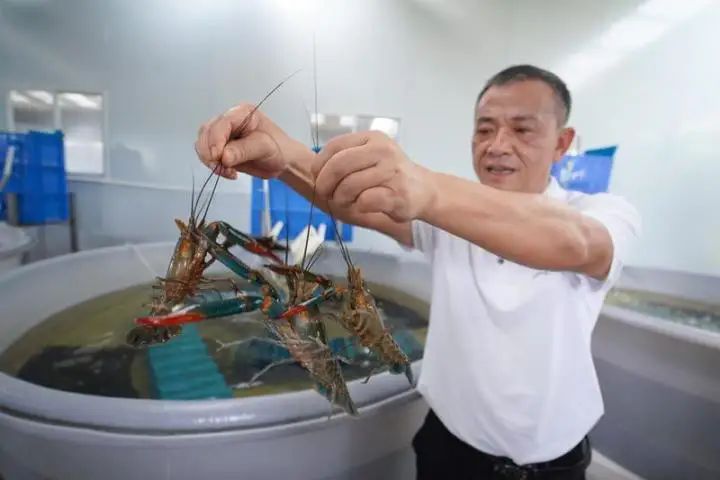 在標(biāo)準(zhǔn)化養(yǎng)殖車間里,蝦媽媽從“產(chǎn)房”產(chǎn)下小寶寶后,蝦寶寶順著既定好的水流路線,來到屬于它們的“寶寶房”,在此接受精心照料。在魚塘養(yǎng)殖場,池塘內(nèi)的水質(zhì)指標(biāo)、蝦苗生長情況,實時傳輸?shù)焦芾砥脚_,技術(shù)人員可以隨時跟進(jìn)、及時調(diào)整,讓蝦苗更好地成長。