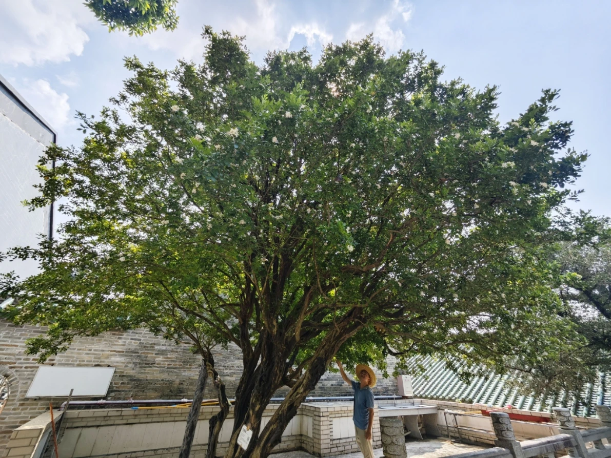 廣東省林業(yè)局、廣東省古樹名木信息管理系統(tǒng)顯示,這株九里香為國(guó)家一級(jí)古樹,樹齡已達(dá)759年。相傳為南宋年間觀內(nèi)一位道士所種。每當(dāng)秋風(fēng)至,白花競(jìng)相綻放,香氣襲人。