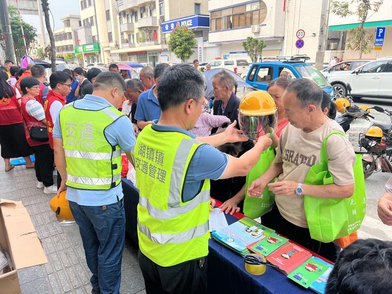 湖鎮(zhèn)鎮(zhèn)大力宣傳交通安全,派發(fā)安全頭盔。