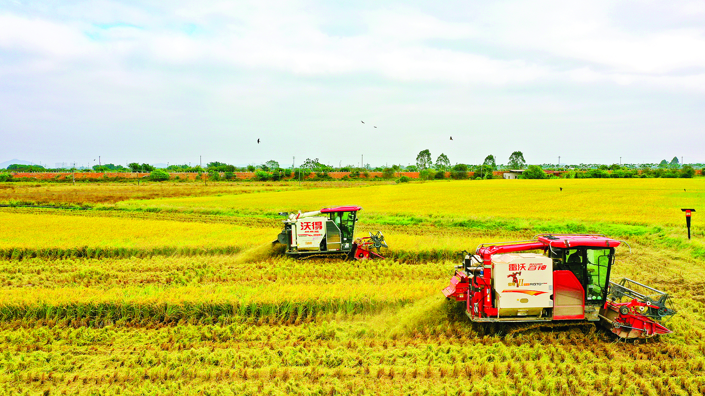惠州日報訊 (記者朱麗婷)稻浪翻滾,滿目金黃。正值晚稻成熟收割期,在博羅縣園洲鎮(zhèn)水口村呈現(xiàn)一派“稻穗黃,機(jī)收忙”的喜人景象。園洲鎮(zhèn)充分發(fā)揮農(nóng)業(yè)龍頭企業(yè)帶動作用,通過“企業(yè)+合作社+農(nóng)戶”的模式,推廣優(yōu)質(zhì)高產(chǎn)品種和農(nóng)業(yè)機(jī)械等適用技術(shù),進(jìn)一步推動農(nóng)業(yè)高質(zhì)量發(fā)展。