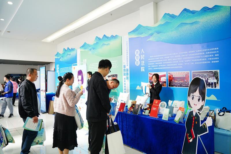 普法展示區(qū)里,被評議單位向參會人員科普相關(guān)職能領(lǐng)域法律知識。