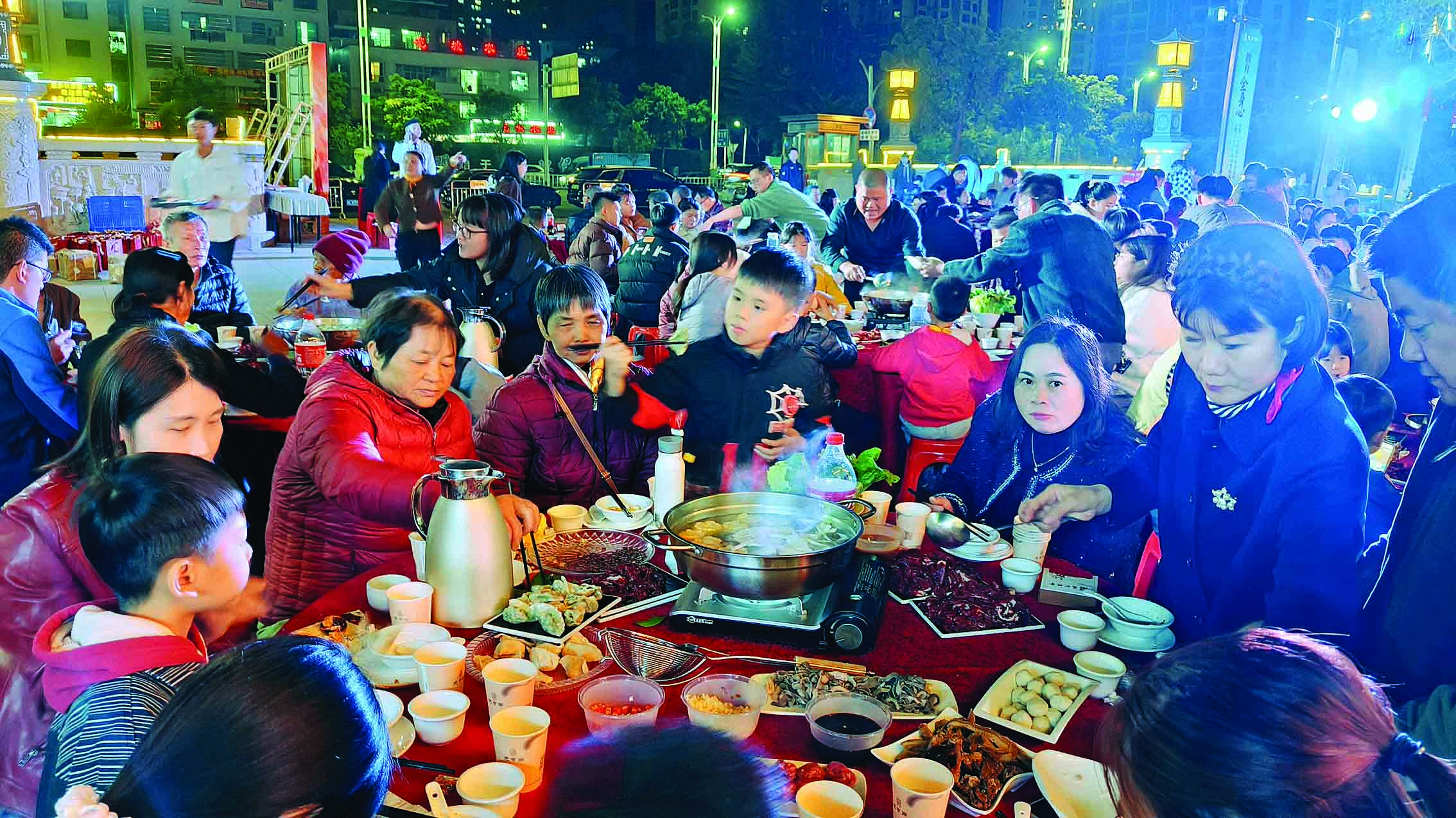 當(dāng)晚,元亨第小區(qū)廣場前,40桌圍臺上擺放著瓜子、糖果、火鍋食材,靜待居民前來赴約;顒佑嘘P(guān)負責(zé)人介紹,此次“社區(qū)沒有陌生”鄰里宴活動已是第二年舉辦,大部分食材由物業(yè)準備。前來赴宴的居民會帶上一兩個拿手菜,跟大家一起分享;顒娱_始前,主持人特別帶領(lǐng)大家相互行問候禮,拉近大家的距離。