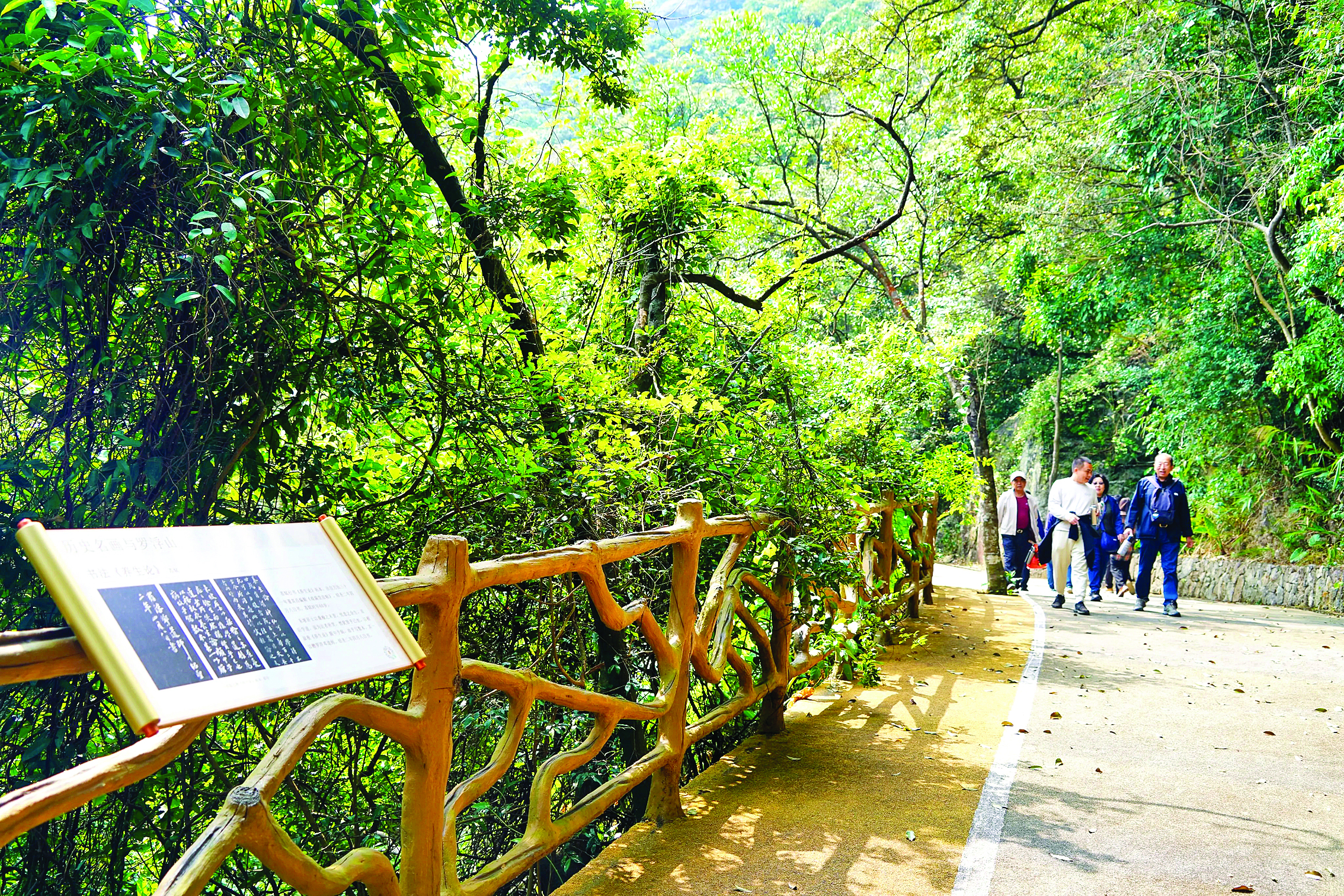 紫云步道的文化標識牌通過詩畫結(jié)合、古今對話的設(shè)計,讓游客不僅能“行于山水”,更能“讀懂山水”,在自然與人文的交融中感受羅浮山的千年文脈與時代新韻。