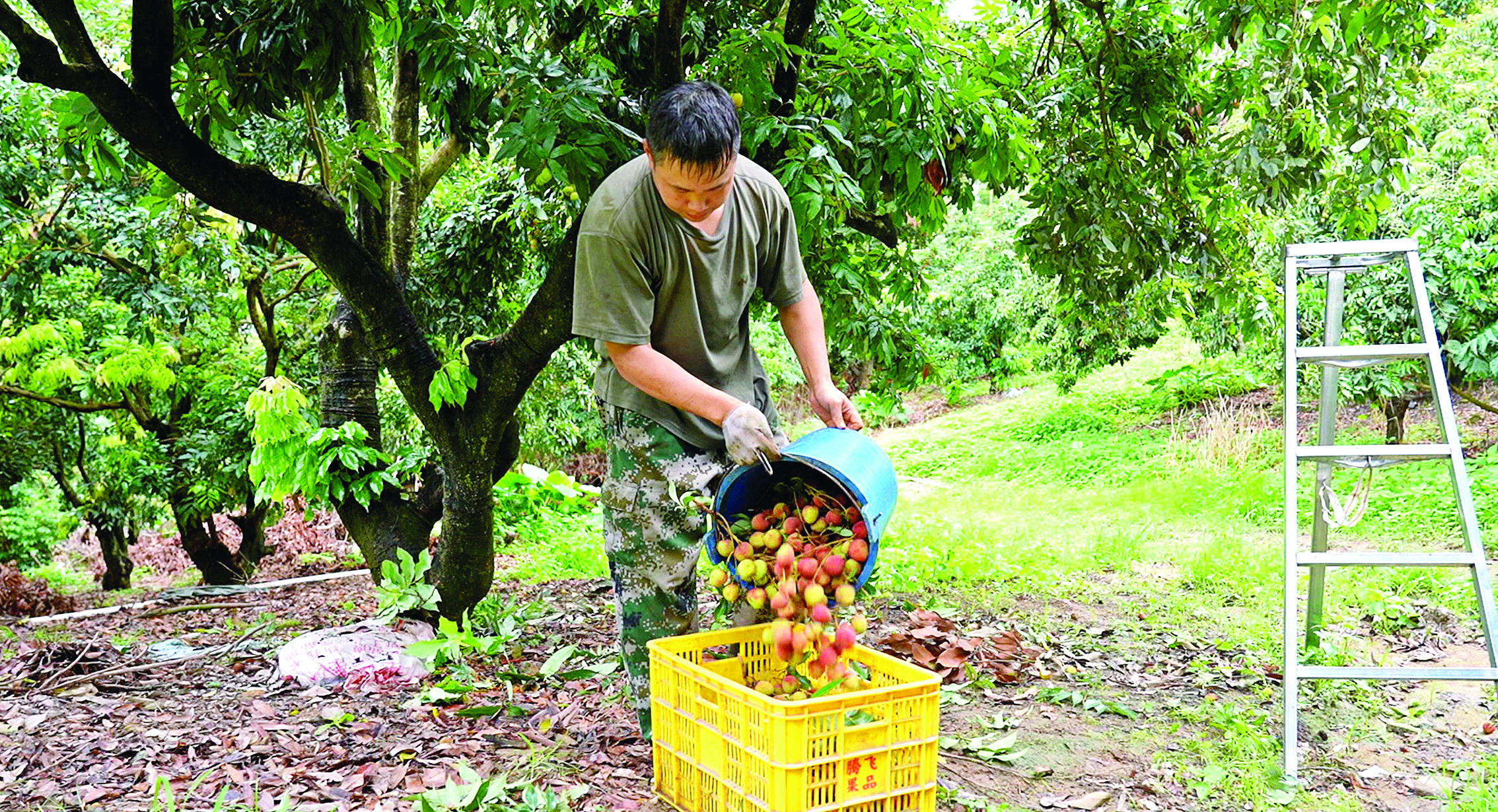 來到柳村村山前村民小組,只見家家戶戶的荔枝園掛滿了荔枝,甚是顯眼。6月10日,山前村民小組迎來妃子笑的上市高峰。這里的妃子笑以果大核小、肉厚多汁、酸甜適中的獨(dú)特品質(zhì),廣受市場青睞。據(jù)統(tǒng)計(jì),山前村民小組的荔枝種植面積達(dá)3500畝,除了妃子笑外,還有糯米糍、桂味和仙進(jìn)奉等品種。桂味、糯米糍等品種將于6月中旬陸續(xù)進(jìn)入采收期。