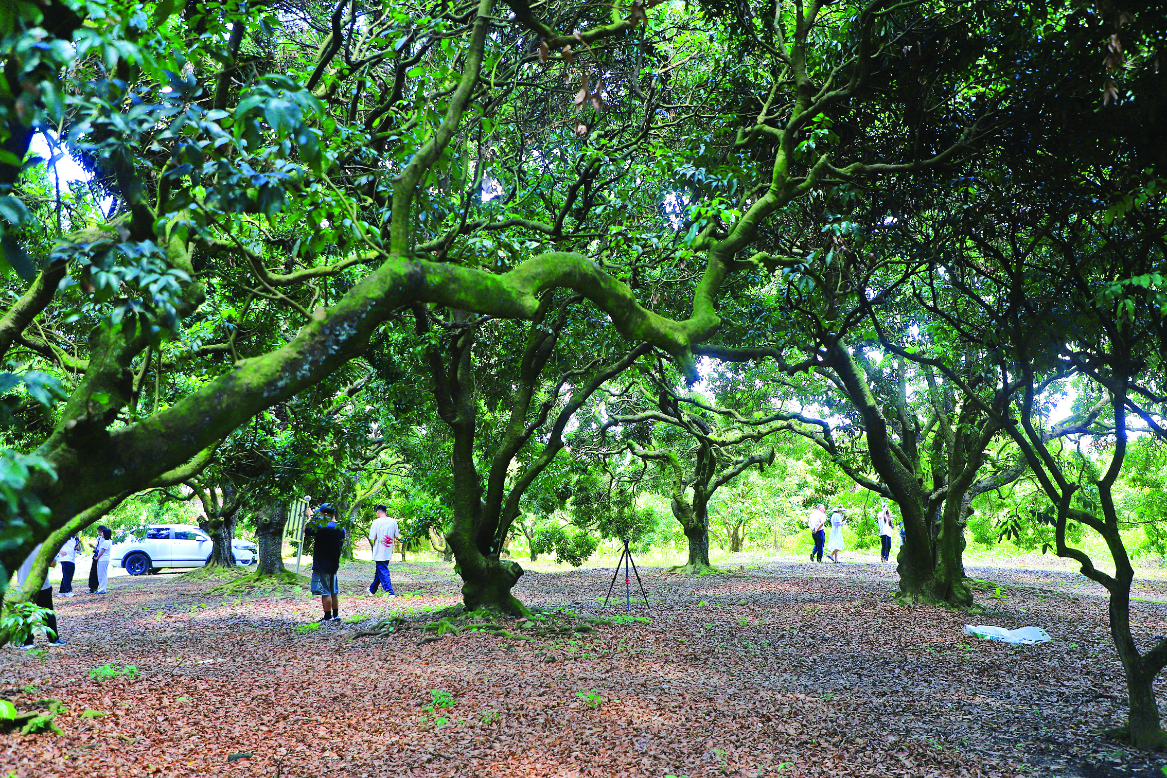 劉育華介紹,維新村有牛坳古荔枝園和樓角古荔枝園兩個(gè)百年荔枝公園,共300多畝。其中,樓角古荔枝園最老的30多棵糯米糍種植于清朝乾隆年間,已有280多年歷史。牛坳古荔枝園占地200多畝,是當(dāng)?shù)孛娣e最大、古樹(shù)擁有量最多的荔枝林。