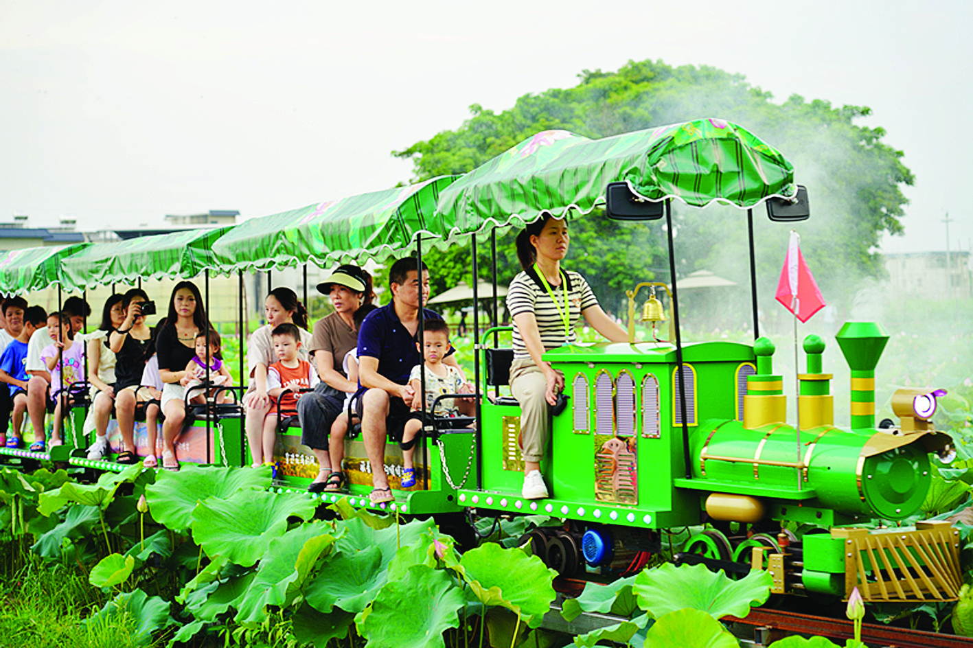 今年,三嘉村百畝荷花園新增的“荷田小火車”項目,成為游客爭相打卡的熱點。“坐著小火車在荷花叢中穿行,荷香陣陣,感覺整個人都放松了!眮碜詵|莞的陳女士帶著家人專程體驗后贊不絕口。這種“低空漫游+高空俯瞰”的立體觀賞體系,讓游客感受到“人在畫中游”的愜意。