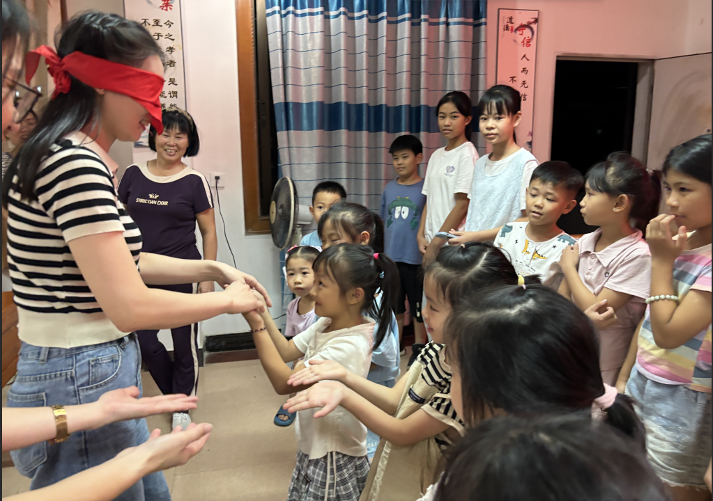 “七夕又叫什么?”“七夕是一個(gè)怎樣的節(jié)日?”……當(dāng)天,在活動(dòng)中,志愿者通過(guò)互動(dòng)問(wèn)答,引導(dǎo)孩子們了解七夕節(jié)的文化內(nèi)涵,從“牛郎織女”的愛(ài)情故事延伸到家庭中的親情守護(hù),傳遞“愛(ài)與陪伴”的核心理念。在《牽手》游戲中,家長(zhǎng)與孩子輪流蒙眼尋找彼此的手,在歡笑與相擁中增進(jìn)信任與默契;手工制作環(huán)節(jié),親子共同完成“愛(ài)捶”小工具,孩子們現(xiàn)場(chǎng)為父母捶背,用行動(dòng)表達(dá)感恩與關(guān)愛(ài)。