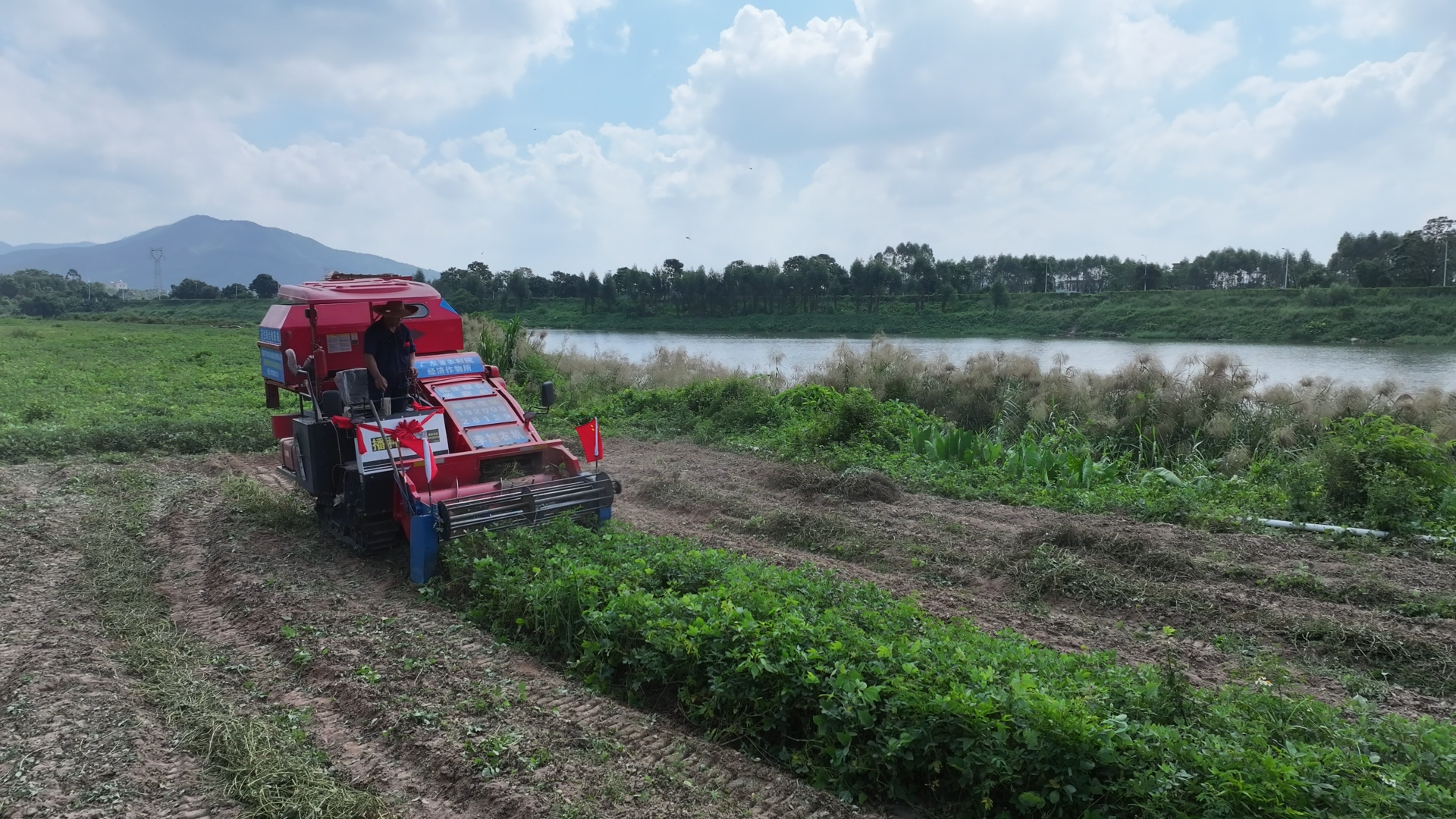 花生聯(lián)合收獲機在收獲花生;葜萑請笥浾弑R泓宇 攝