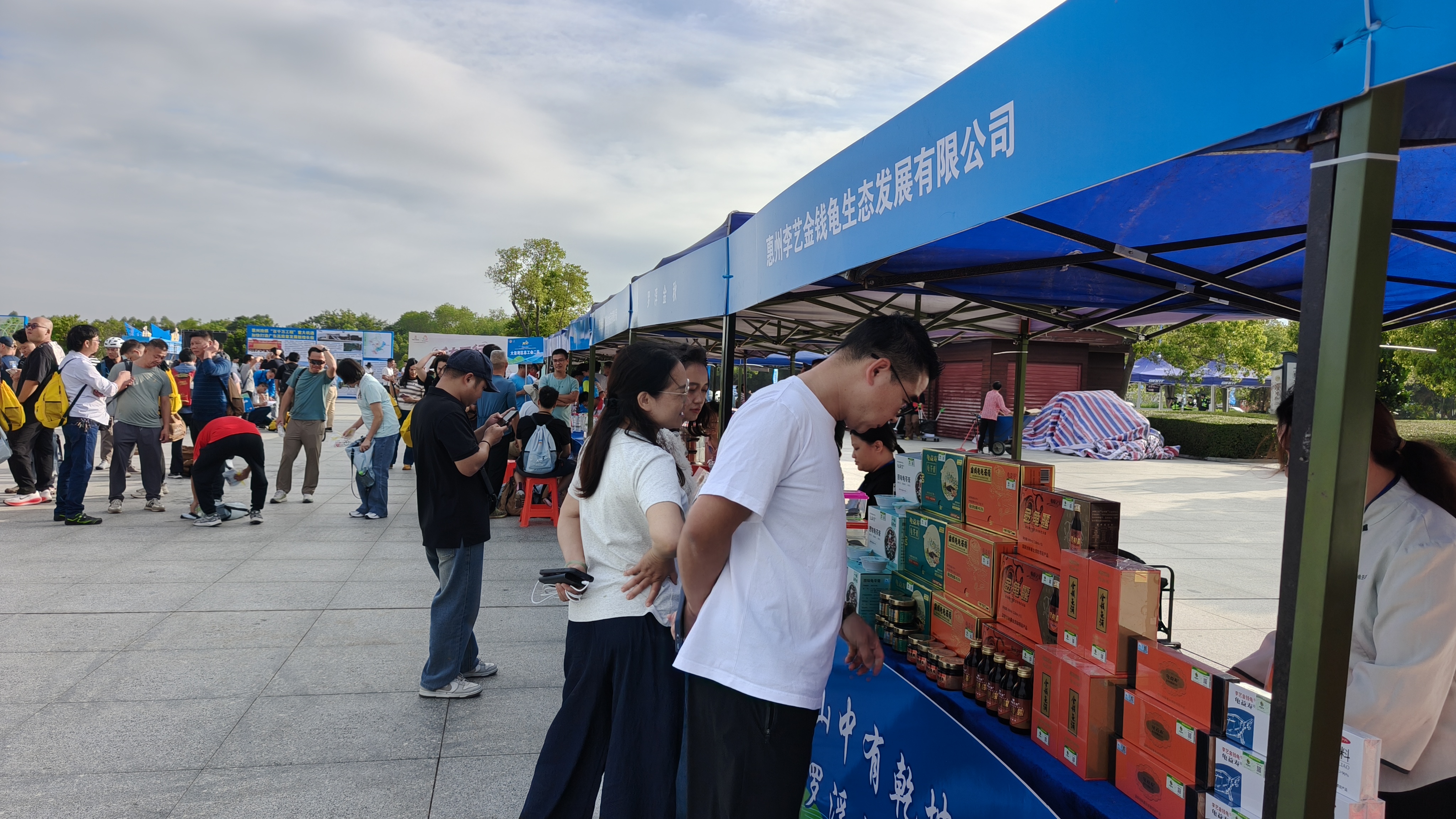 羅浮山風(fēng)景名勝區(qū)旅游文化廣場是此次騎行活動的起點,30多家博羅農(nóng)業(yè)企業(yè)在此展銷,匯集了葛仙堂姜茶、金線蓮飲品、嘉粵甘草梅、金錢龜飲品等當(dāng)?shù)靥禺a(chǎn)。當(dāng)天,不少騎手簽到后便在廣場品嘗這些特色美食。來自深圳的騎友林水清說:“美食很多,很誘人,品嘗了好多種,還買了一些!被葜葜修r(nóng)鼎盛農(nóng)業(yè)有限公司負責(zé)人楊鋒波帶來新開發(fā)的荔枝紅茶供騎友試飲。楊鋒波說,此次騎行活動搭建了一個農(nóng)特產(chǎn)品推廣的平臺。
