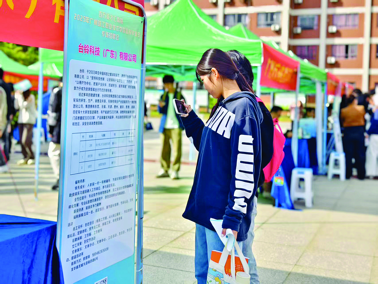招聘會現(xiàn)場一派火熱景象,各家企業(yè)的展板清晰標(biāo)注崗位需求、任職要求與薪資福利等信息。明年將畢業(yè)的大學(xué)生王佐耀在多個企業(yè)展位間對比崗位,“不用出校門,就能參加匯集這么多企業(yè)的招聘會,非常方便!面對面交流能更清楚了解企業(yè)情況,崗位選擇多,也比較靠譜。”臺鈴科技(廣東)有限公司招聘主管歐碧雨介紹,該公司急需機(jī)電一體化等方面的人才,已與多個求職者達(dá)成初步意向:“專業(yè)匹配度和學(xué)生綜合素質(zhì)都符合預(yù)期!