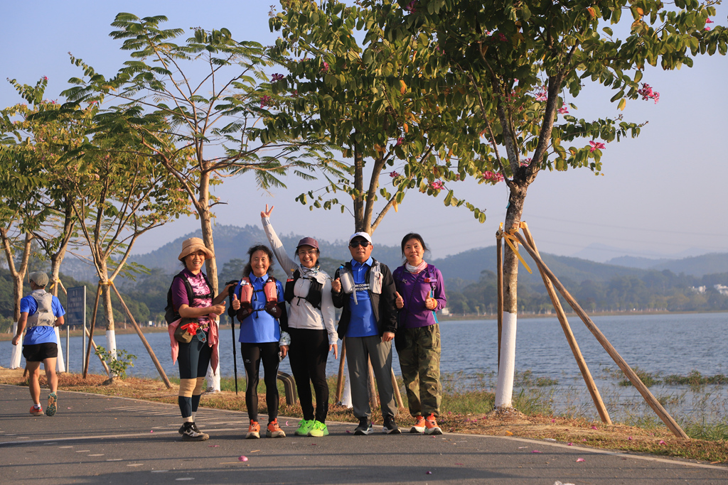 此次徒步線路全程57公里,其中約36公里綠道,18公里鄉(xiāng)道和村道,3公里機耕路,途經長寧鎮(zhèn)、橫河鎮(zhèn)、湖鎮(zhèn)鎮(zhèn),再回到羅浮山風景名勝區(qū)旅游文化廣場。沿途山水相依,綠美相隨,美景填滿了大家的雙眼。作為途中的“重頭戲”,“小洱海”再次出圈,不管是初來乍到,還是二次相遇,或是多次光臨,驢友們都不吝嗇贊美之詞。據悉,此次徒步活動吸引了來自惠州、廣州、深圳、東莞、佛山、珠海、中山、上海、香港、澳門等全國各地驢友前來參與。來自深圳的谷女士帶著丈夫、兒子一家三口前來參加活動。在“小洱海”,他們多次放慢腳步,拍照打卡。她興奮地說:“手機的內存空間,都快要報警了!