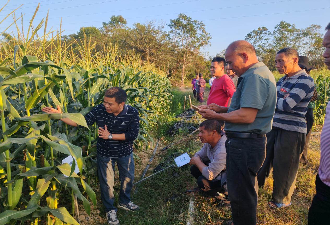 種植戶在田間學(xué)習鮮食玉米優(yōu)新品種高效栽培技術(shù)。 惠州日報記者王開堯 盧泓宇 攝