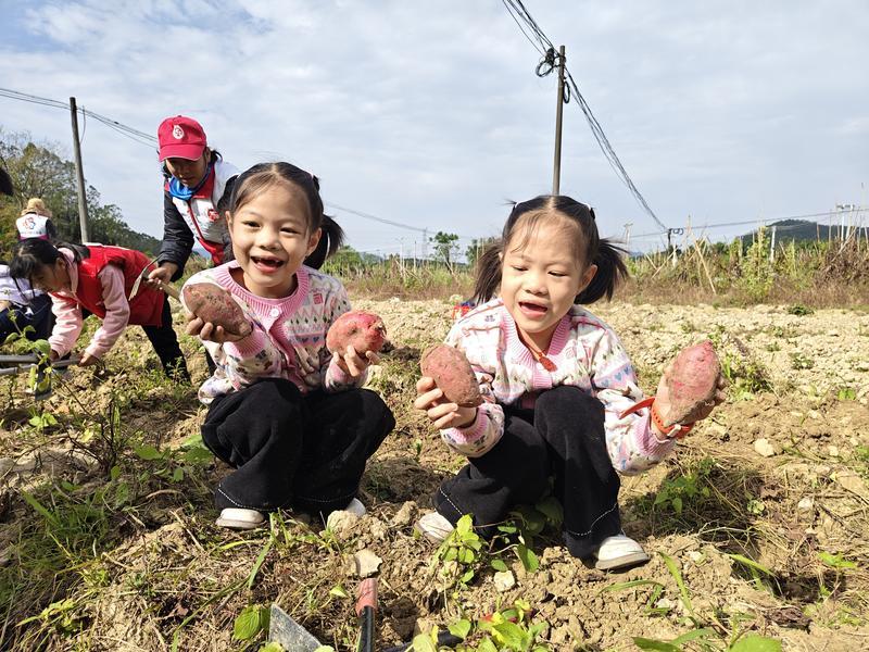 孩子們參加挖紅薯勞作實(shí)踐,學(xué)習(xí)“愛糧節(jié)糧”。 惠州日報(bào)記者李燕文 通訊員劉鳳英 攝