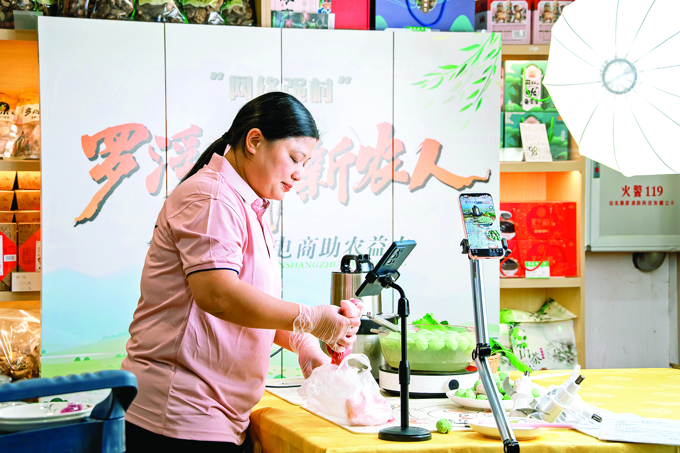 柏塘鎮(zhèn)羅浮金秋有限公司的直播間則彌漫著食物的香氣。主播楊小霞正在直播制作客家特色蔬菜豬肉丸,周圍堆滿即將發(fā)貨的臘味禮盒!拔覀兠恐苤辈ゼs5天,每天兩場(chǎng),內(nèi)容以制作本地美食為主!惫矩(fù)責(zé)人楊志豐說(shuō)。這家“前店后廠”的企業(yè),不僅直播賣貨,更通過(guò)短視頻拍攝萬(wàn)畝茶園等鄉(xiāng)村風(fēng)光,一條“爆款”視頻就能為茶山帶來(lái)持續(xù)一周的客流,真切體現(xiàn)了“流量帶來(lái)游客,游客帶動(dòng)消費(fèi)”的良性循環(huán)。從質(zhì)量檢測(cè)員轉(zhuǎn)型為主播的楊小霞,見證了直播業(yè)態(tài)為本地群眾帶來(lái)的新機(jī)遇與新收入。