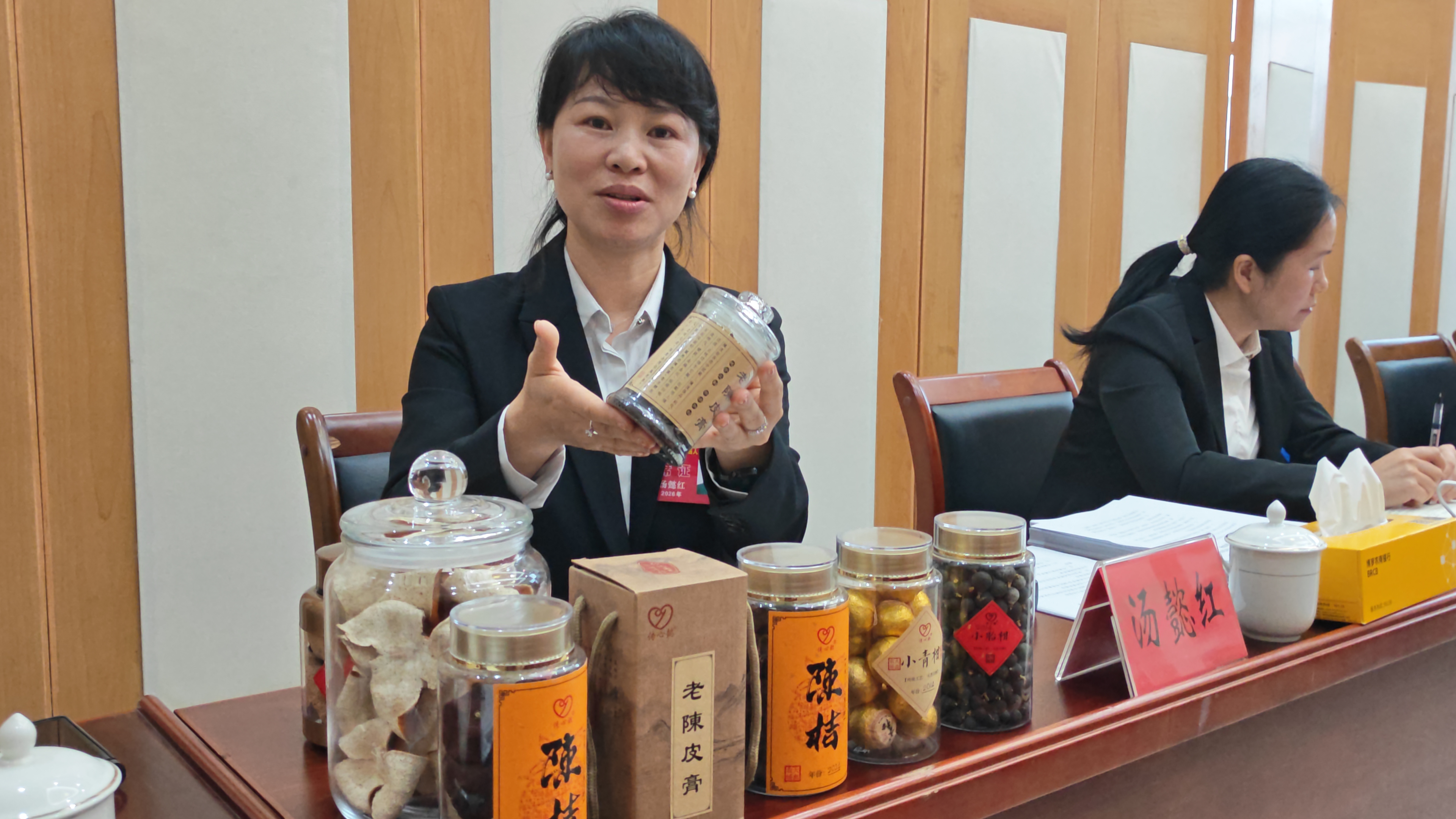 縣人大代表湯懿紅推介家鄉(xiāng)的陳皮。