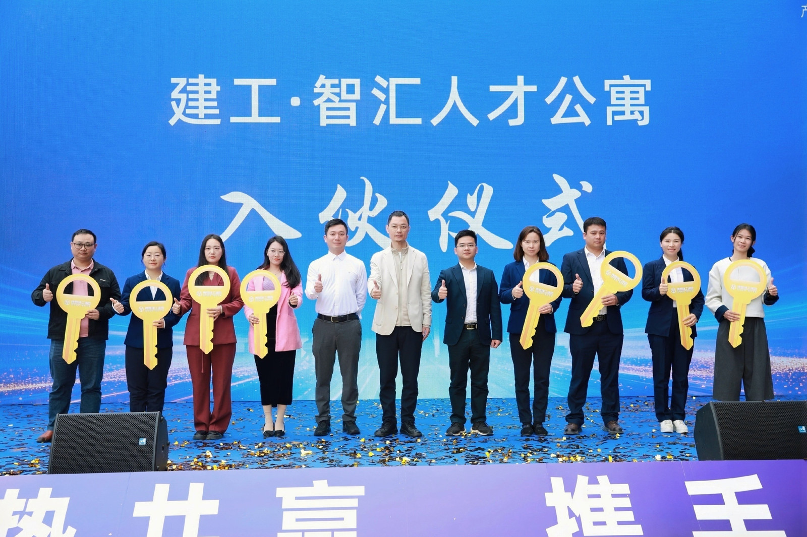 入伙儀式為企業(yè)人才代表發(fā)放“鑰匙”。