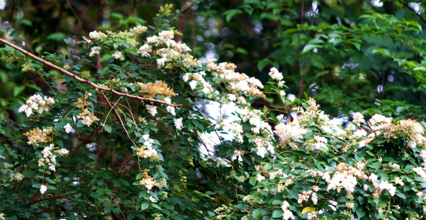 密林與宮粉紫荊相映,暈開一抹溫柔粉霞。