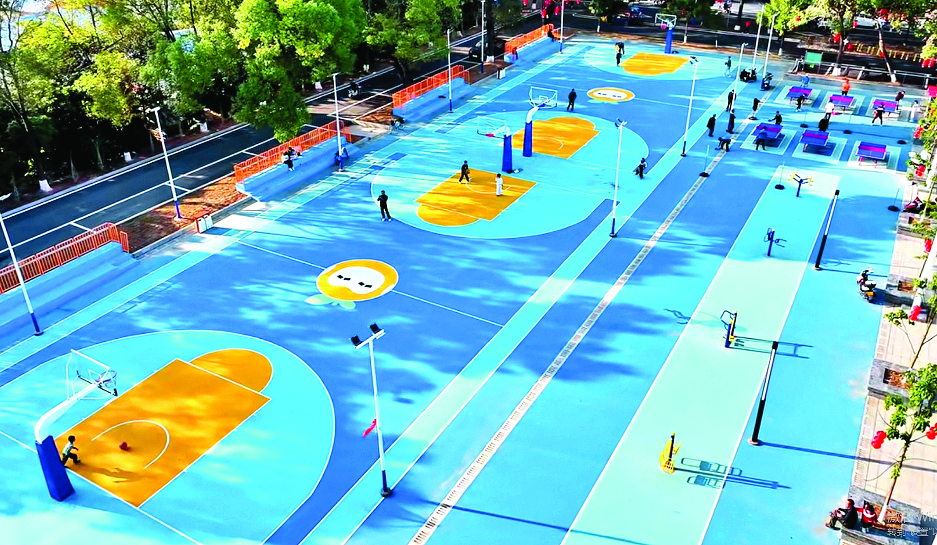 惠民廣場(chǎng)的籃球場(chǎng)地面繪制了俏皮的“柑仔”形象。