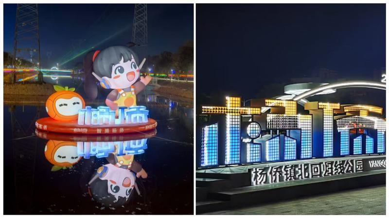 夜幕降臨,南蛇瀝河道之上,IP氣!靶S”與“柑仔”懸臥水面,暖光隨水波搖曳,宛如從歸僑歲月、墾荒征程中走來的信使,成為詩意風(fēng)景線。北回歸線公園內(nèi),立體“楊僑”LOGO地臺(tái)兼具地理科普與休閑功能,白天彰顯楊僑地理特色,夜晚化身浪漫坐標(biāo),讓文化標(biāo)識(shí)真正融入居民日常。
