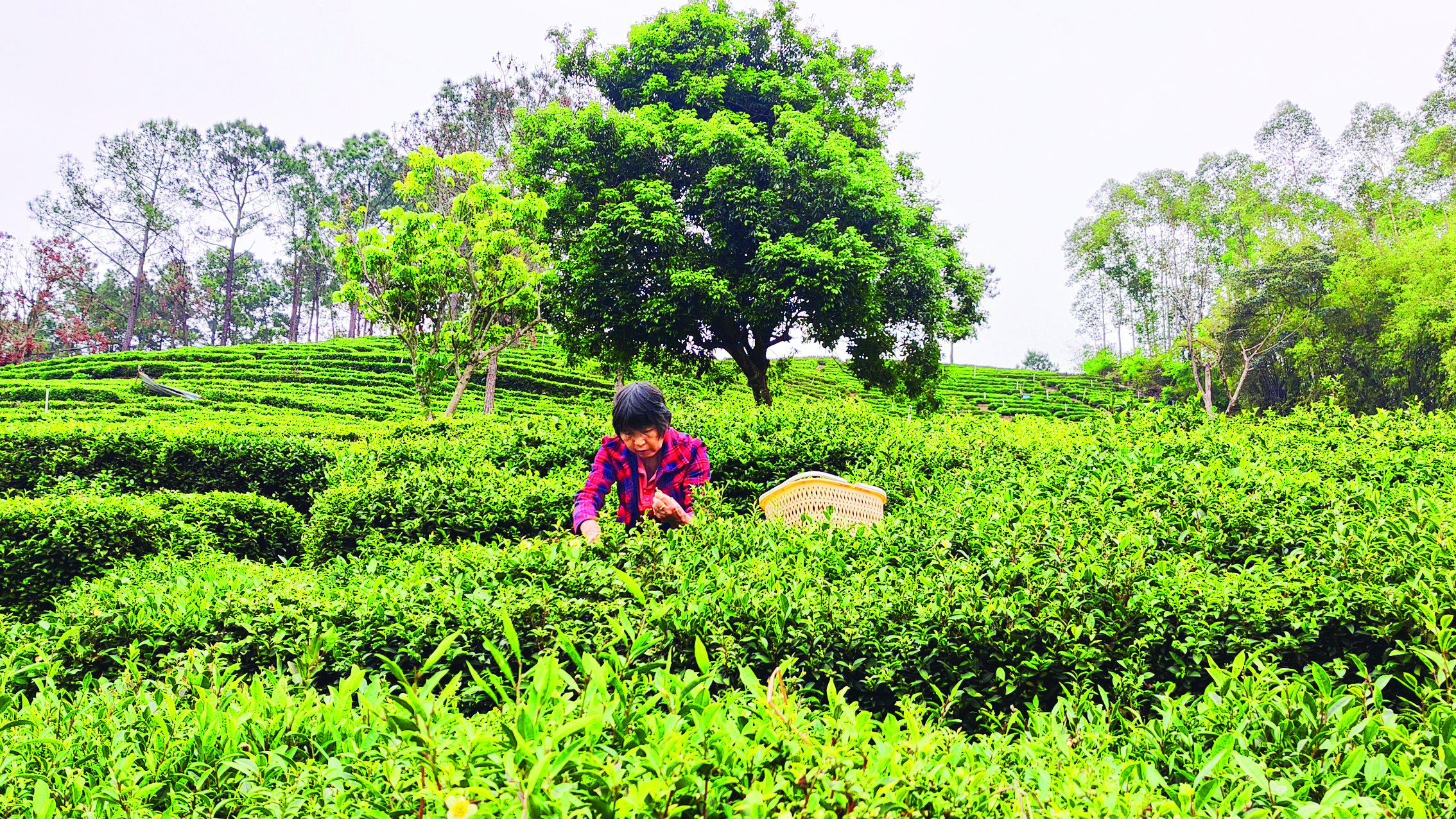 煙雨朦朧的清明,茶山被洗得清亮,一片片嫩芽頂著晶瑩的雨珠,在晨光中泛著溫潤的光澤。清明前后是一年茶葉生產(chǎn)的重要季節(jié)。對于清明茶的采摘,茶農(nóng)格外重視。今年60余歲的曾桂錦,與茶相伴已有半個世紀(jì),10多歲便跟著長輩種茶、炒茶。談及茶葉,曾桂錦的眼中滿是熱忱:“這幾天天不亮就上山,看看茶芽的長勢,安排好采茶的活計(jì),半點(diǎn)不敢馬虎!敝形绲却蠹野巡枨嗖苫貋,他便開始炒茶,一炒就是大半天,有時要忙到晚上十一二點(diǎn)。