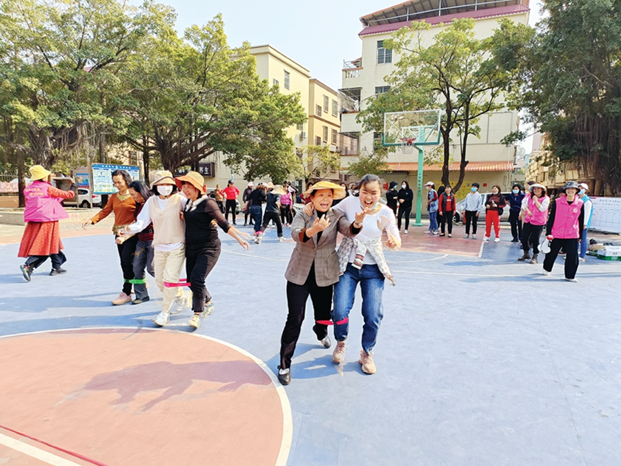 3月3日下午,惠州紅紫荊家庭服務(wù)大亞灣巖前中心在澳頭街道巖前村中心公園舉辦了“巾幗心向黨 奮進(jìn)新征程——‘提振精氣神,凝聚她力量’巖前村慶‘三八’婦女趣味運(yùn)動(dòng)會(huì)”,基層?jì)D聯(lián)執(zhí)委、巾幗志愿者、村(居)婦女熱情參與。大家齊心協(xié)力,共同完成了“企鵝漫步”“兩人三足”“一圈到底”等比賽項(xiàng)目;顒(dòng)現(xiàn)場(chǎng),各隊(duì)成員熱情投入、奮勇拼搏,場(chǎng)上的加油聲和歡呼聲此起彼伏。