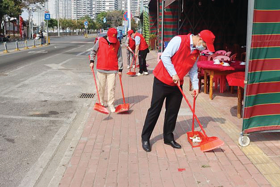 霞涌街道志愿者清掃街道;葜萑請笥浾呖锵娑 曾靜妍 攝