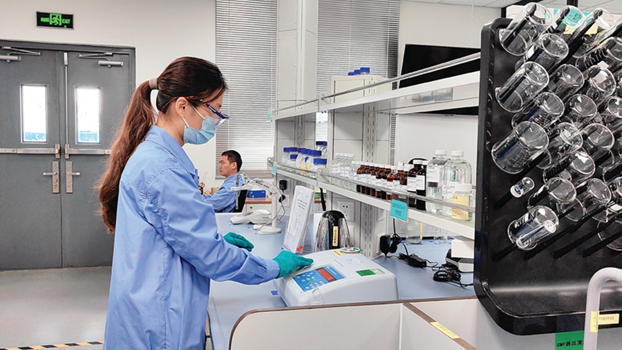 員工在科萊恩惠州工廠(chǎng)實(shí)驗(yàn)室作業(yè)。