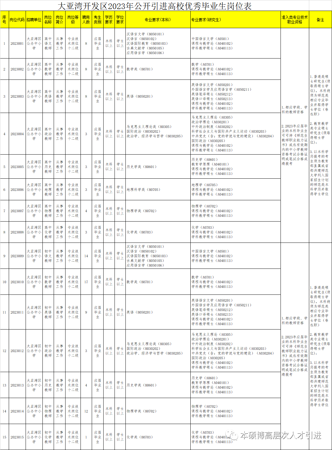 點(diǎn)擊鏈接 :大亞灣開發(fā)區(qū)2023年公開引進(jìn)高校優(yōu)秀畢業(yè)生公告