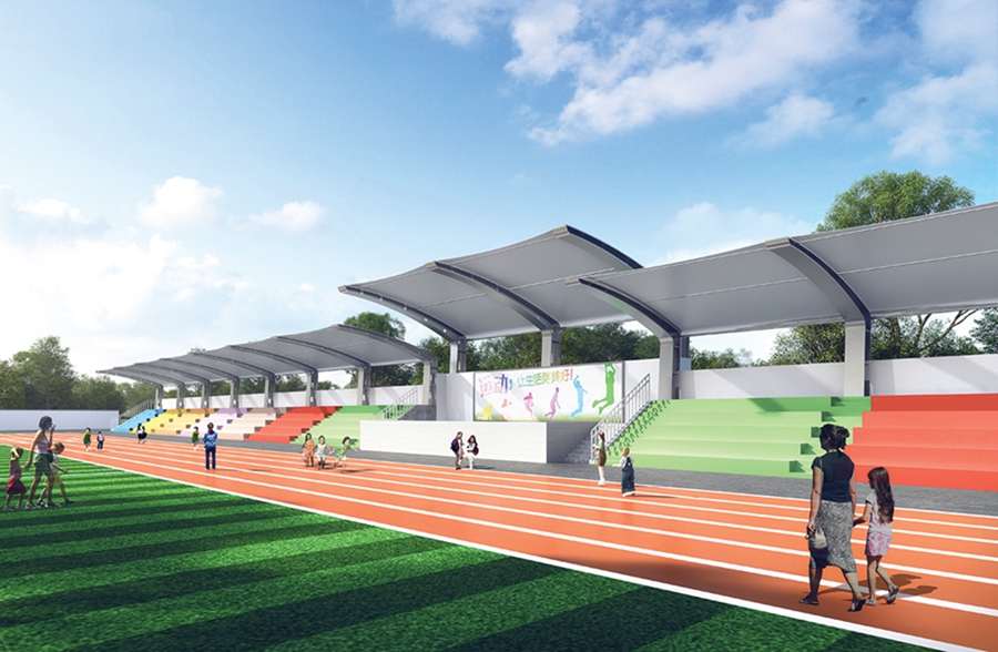 據(jù)了解,修繕后的體育場包含200米跑道,跑道中央將鋪設人工草皮,打造適用于小學生的足球場。標準籃球場將增加到5個,另增設3個小籃球場、15張乒乓球桌。重新修繕的看臺將添加雨棚,可以同時容納840人。該項目預計9月完工并投入使用,修繕后的體育場將科學規(guī)劃功能區(qū),為廣大師生提供一個更加良好的體育活動場地。