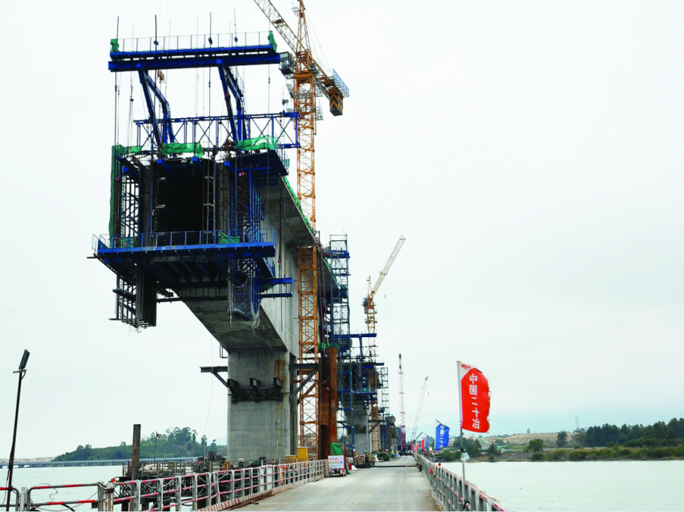 從高空俯瞰,大亞灣跨海公用管廊二期項目猶如一條巨龍從淡澳河白壽灣入?诤C嫔峡邕^。施工現(xiàn)場,橋面上空20多米高的管廊上,工人們正夜以繼日分班澆筑作業(yè),以確保項目今年中主體完工。