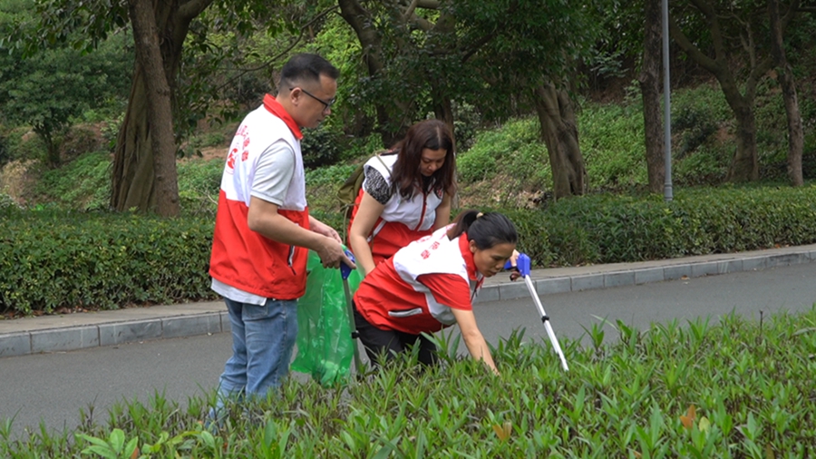 “為愛彎腰,‘益’起撿跑;垃圾不落地,園區(qū)更美麗,大家一起來!”在虎頭山公園,志愿者們唱響撿跑口號,拿起垃圾袋,拎起垃圾夾,一路慢跑,并將沿途發(fā)現(xiàn)的小紙屑、煙頭、果殼、包裝盒、水瓶等垃圾順手撿入垃圾袋中!拔覅⒓又驹阜⻊栈顒5年了,撿跑活動既鍛煉了身體,又保護了環(huán)境,很有意義。”今年58歲的張偉英說道。