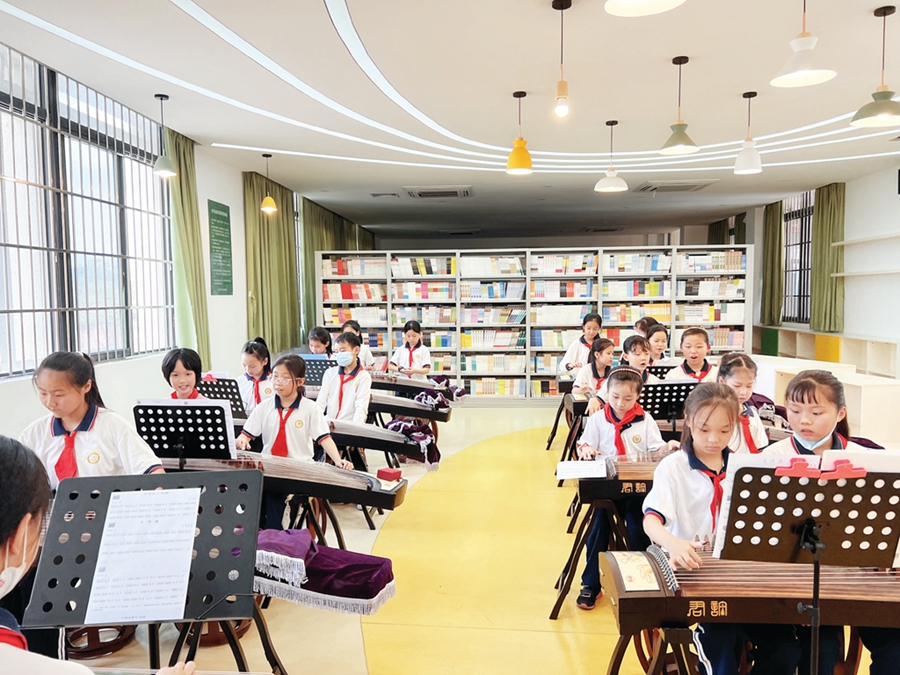 學(xué)生們?cè)诠殴~班學(xué)習(xí)古箏。
