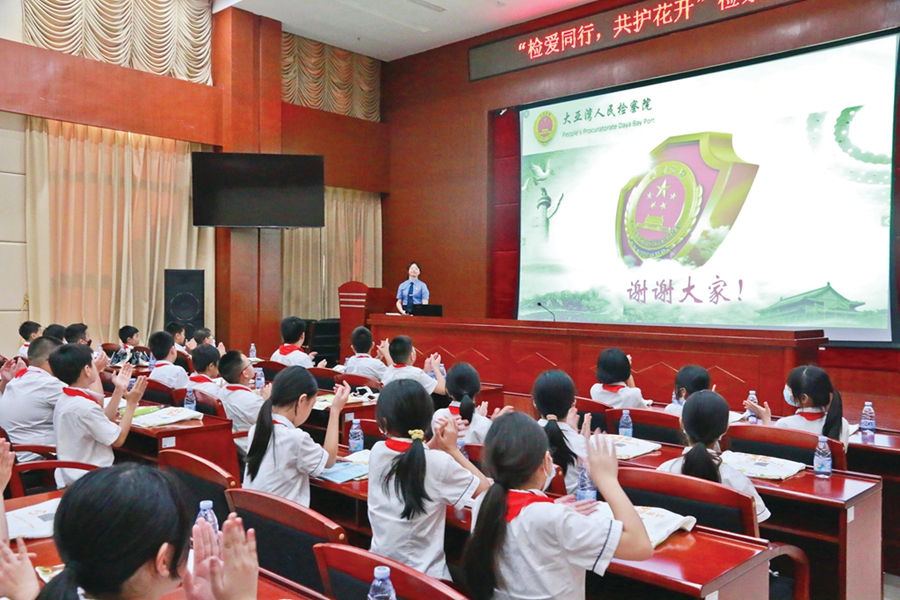 惠州日報訊 (記者曾靜妍 通訊員袁志佳 吳慧麗)日前,大亞灣開發(fā)區(qū)人民檢察院開展“檢愛同行,共護(hù)花開”檢察開放日活動。當(dāng)天,大亞灣開發(fā)區(qū)人民檢察院邀請了人大代表、政協(xié)委員、人民監(jiān)督員、大亞灣開發(fā)區(qū)黨工委管委會黨建工作辦公室等部門有關(guān)負(fù)責(zé)人、學(xué)校校長、幼兒園園長和學(xué)生家長代表參加座談,并組織大亞灣西區(qū)實驗學(xué)校的50多名學(xué)生和老師觀看法治宣傳視頻、聽法治宣傳講座、參與普法小游戲。