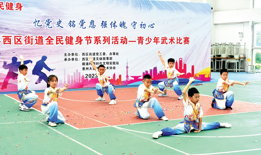 惠州日報訊 (記者匡湘鄂 通訊員陳釔霖)日前,以“憶黨史 銘黨恩 強體魄 守初心”為主題的2023年西區(qū)街道全民健身節(jié)暨青少年武術比賽在大亞灣西區(qū)樟浦小學(新校區(qū))運動館舉行,來自西區(qū)街道8所學校的8支代表隊參加了比賽。