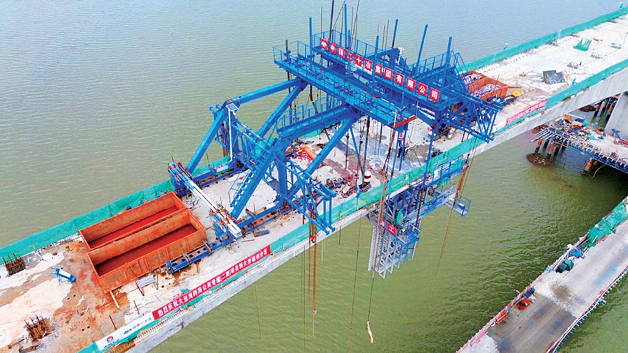 大亞灣跨海公用管廊(二期)項(xiàng)目特大型橋梁建設(shè)現(xiàn)場;葜萑請笥浾呖锵娑 通訊員張楚鋒 攝