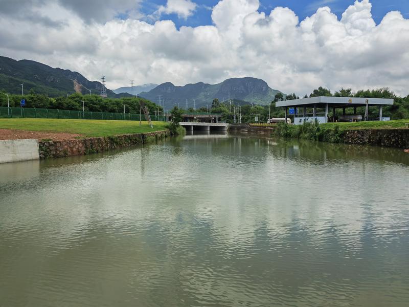 巖前河從山林間流出來后,從惠深沿海高速公路和北環(huán)路橋底下穿過,流過石化區(qū)北門進入石化區(qū)。經(jīng)過整治的河道因為攔水壩的作用,在這里形成一個寬闊的水面,河水很是清澈。