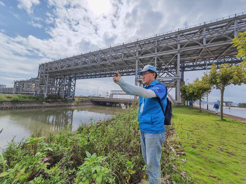 沿著巖前河石化區(qū)段邊的濱海四路一路往南,滿眼皆是風景,有巖前河的碧波蕩漾和河邊青草茵茵、綠樹映照,還有高大的油罐、縱橫交錯的管線組成的工業(yè)美景,讓人不由得心生豪情與感動。