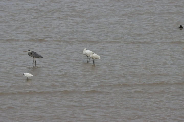 大亞灣區(qū)藍(lán)色海灣公益協(xié)會(huì)“鳥人”小組,再一次在大亞灣淡澳河入?诎讐蹫碁┩颗臄z到2只黑臉琵鷺和4只白琵鷺。